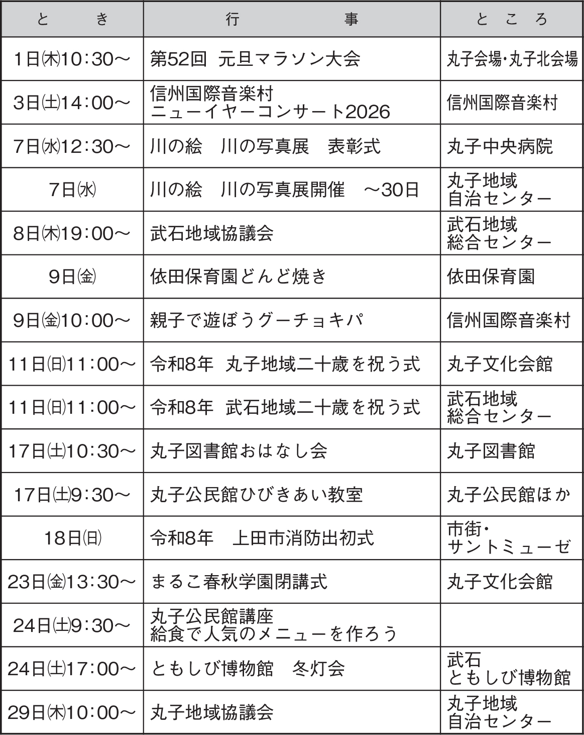 2026年1月の行事